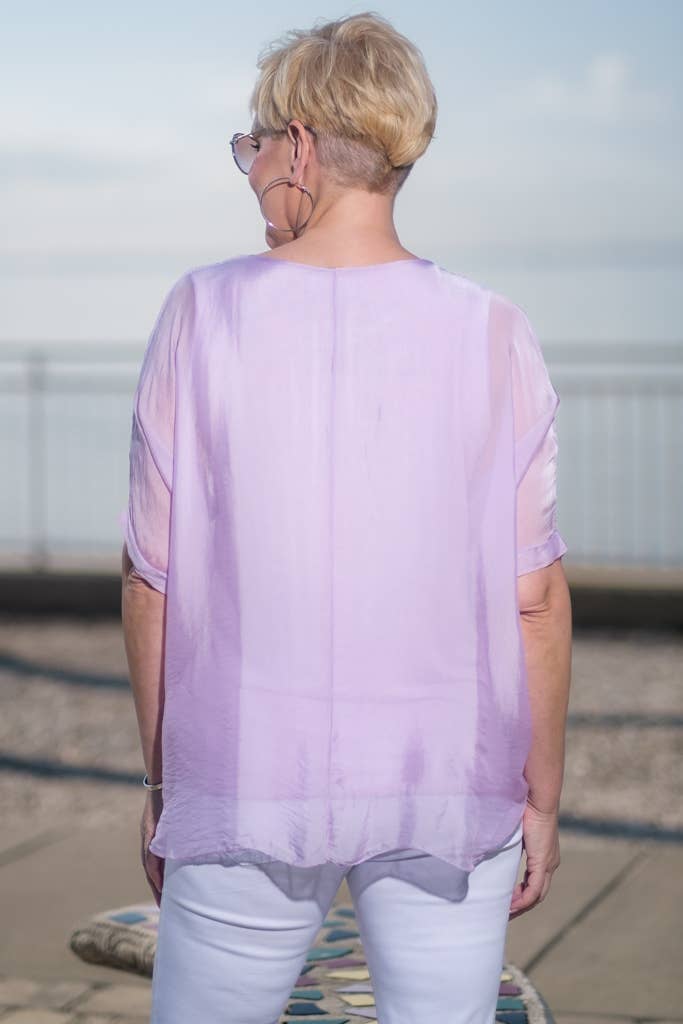 This easy-fit top with elbow length sleeve, is perfect for a night out! Sheer sleeve and flirty layered hem add a touch of femininity, while the buttery-soft viscose lining will keep you comfortable all day! Made in Italy.