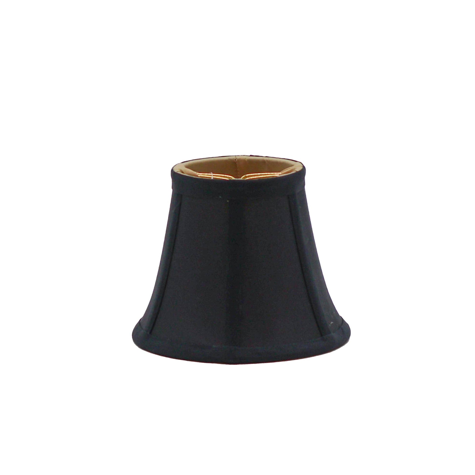Our elegant Pure Silk Dupioni Chandelier Shades are a beautiful complement to your existing contemporary home décor. Their bell shape and vertical piping create an eye catching look in any room. The Flame Clip fits securely of your bulb with no finial The flame clip is made with sturdy metal with a brass finish. Shade measures 3" top diameter x 5" bottom diameter x 4" slant height Softback chandelier shade with vertical piping and gold liner Made from high-quality Dupioni silk
