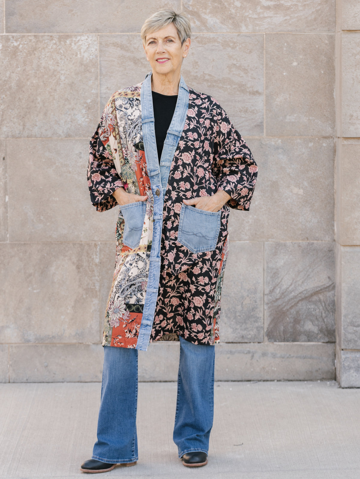 Our #1 bestselling cardigan, made of upcycled vintage denim, is a must addition to your wardrobe. Crafted from eclectic mix of fabrics, this lightweight cardigan will keep you warm without weighing you down.