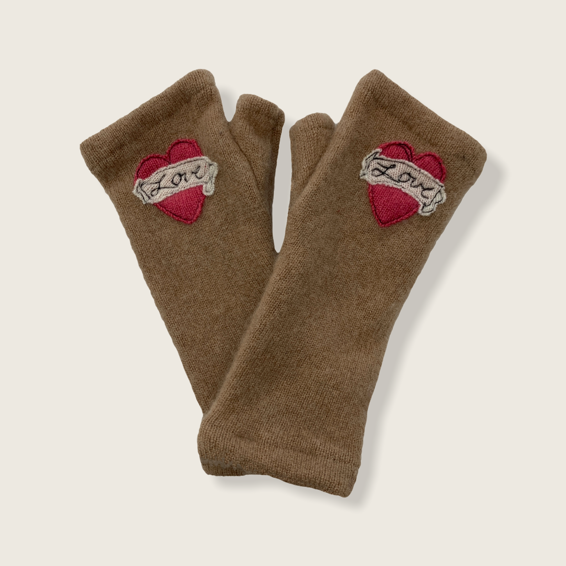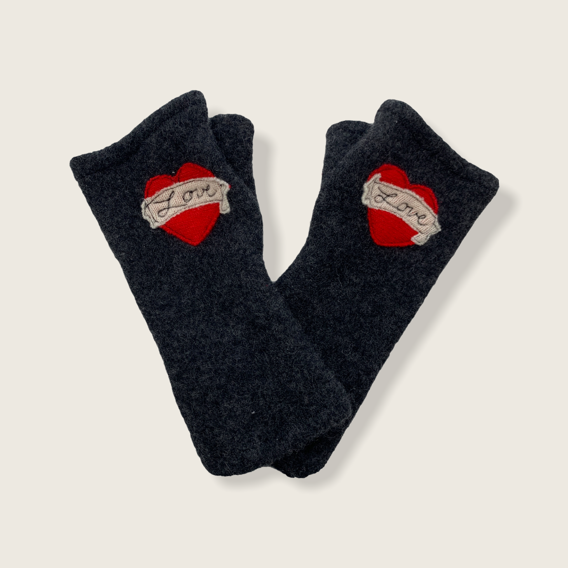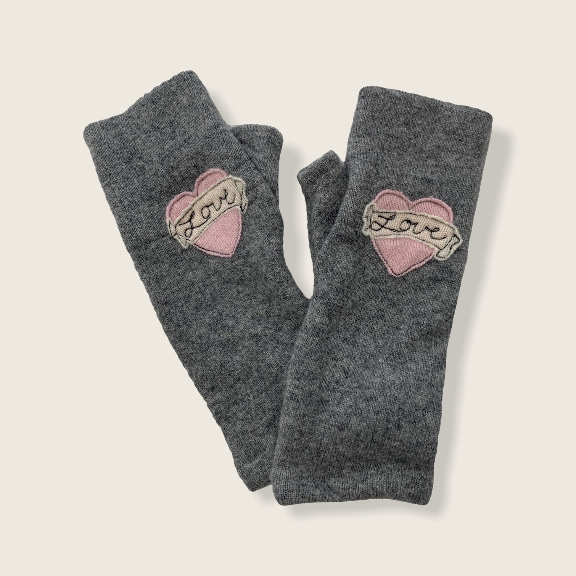Fingerless Cashmere Gloves-Tattoo Heart Love