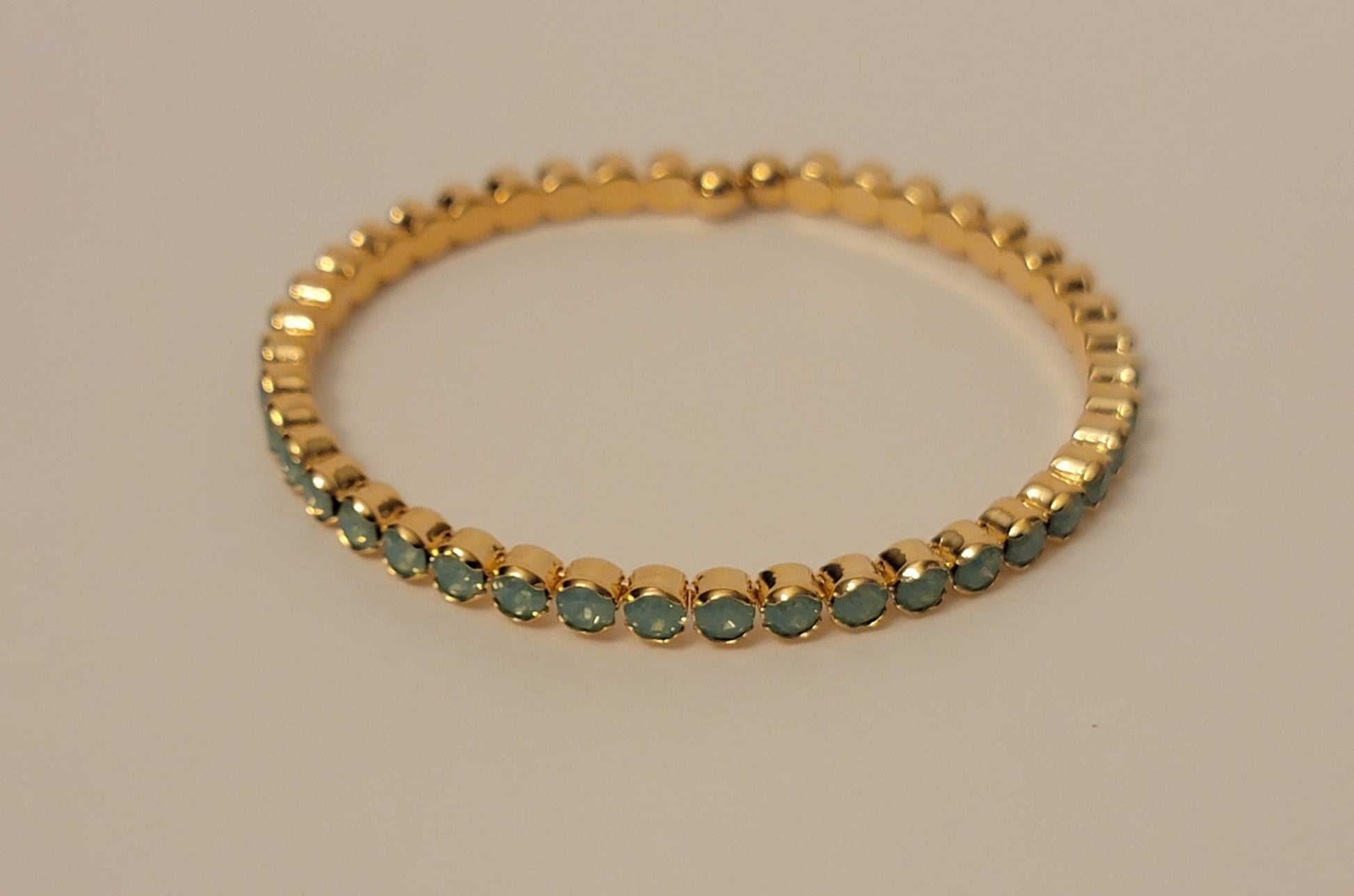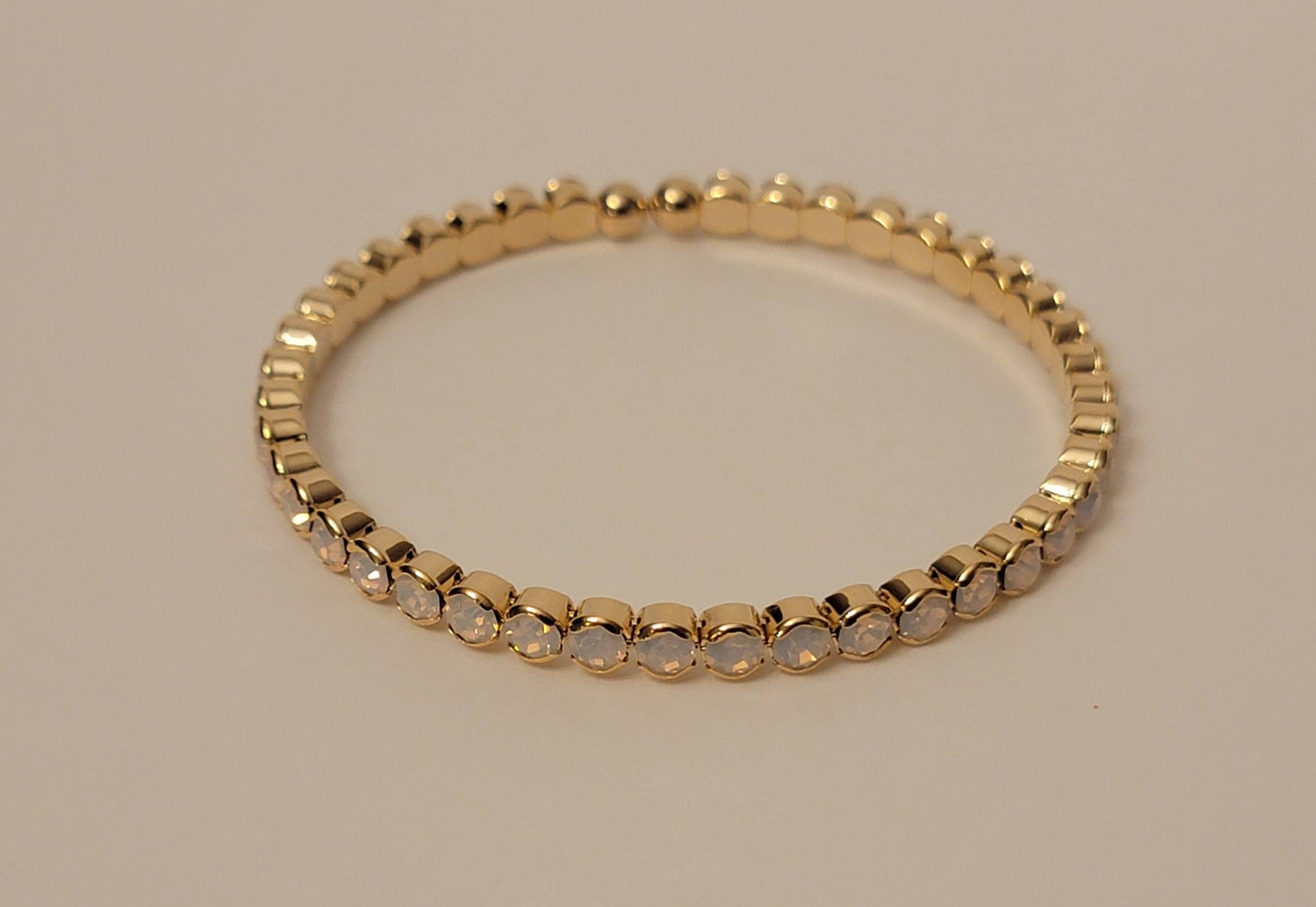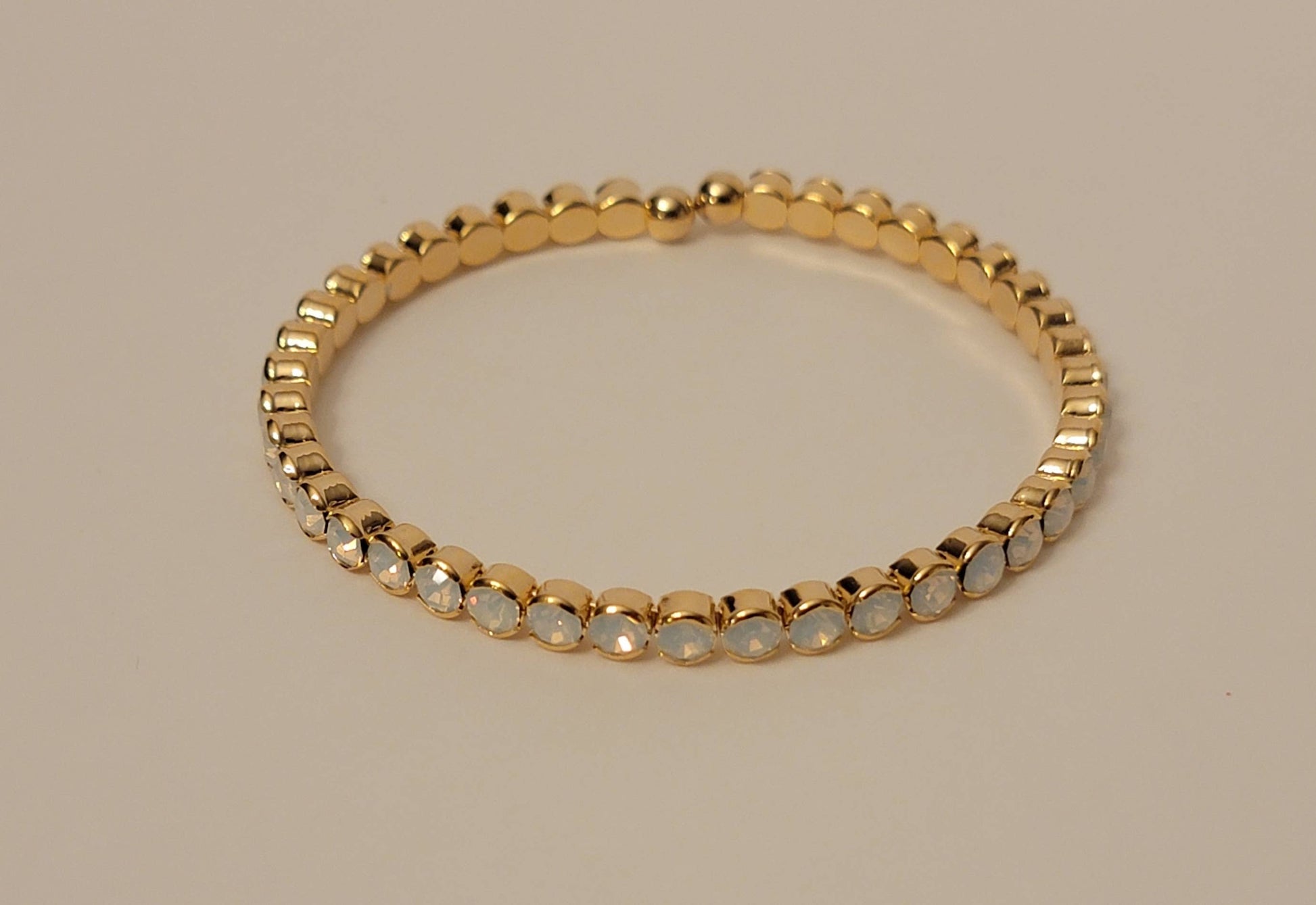 RHINESTONE OPAL GOLD METAL AND CHOCOLATE GOLD METAL BRACELET.