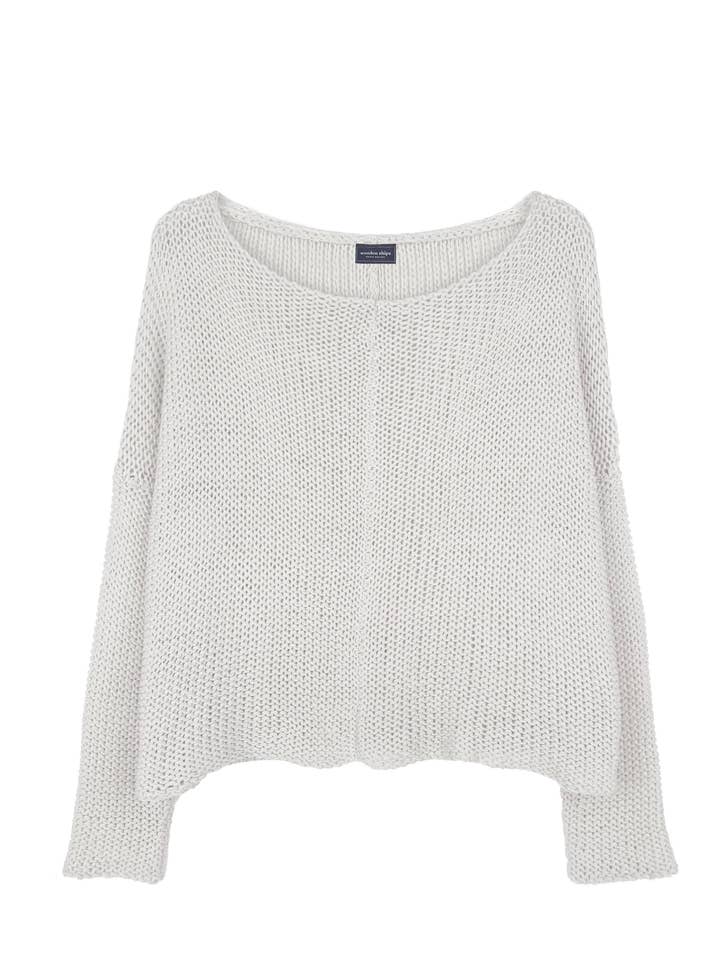 Amazingly soft and light cotton blend top. Beautifully oversized, featuring an extra wide body, this flattering crew neck is offset with a fitted sleeve. The center seam adds a casual vibe. An open neckline and loose knit construction will show off a hint of what you are wearing underneath.This style runs big, so we recommend sizing down if you are in between sizes.