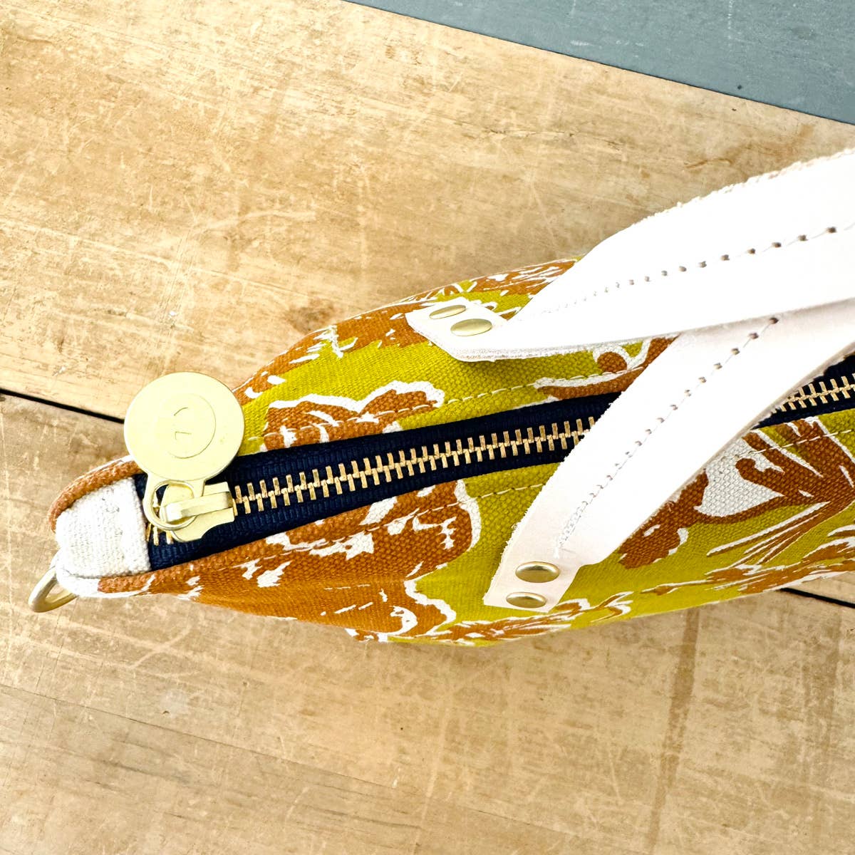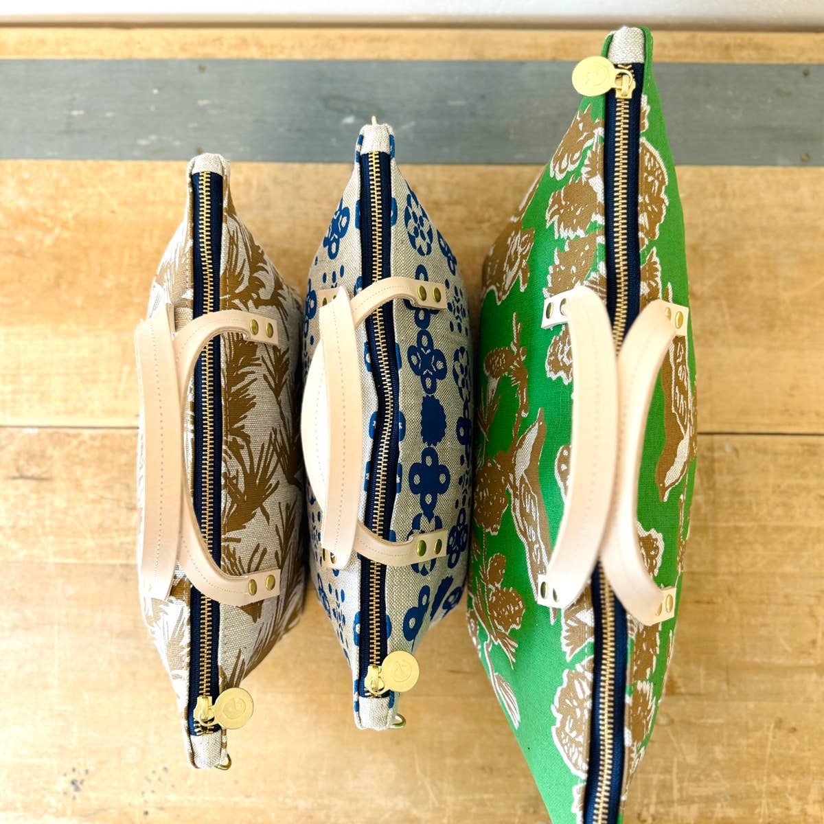 The cutest little crossbody mini bag. Replacing the Jen Bag in this collection is this new little mini-me. I love love this new shape. It has all the things, heavy canvas hand printed with double thick handles. 8 brass rivets and a slip pocket inside. We also attached 2 d-rings so you can add one of our canvas or leather adjustable straps.