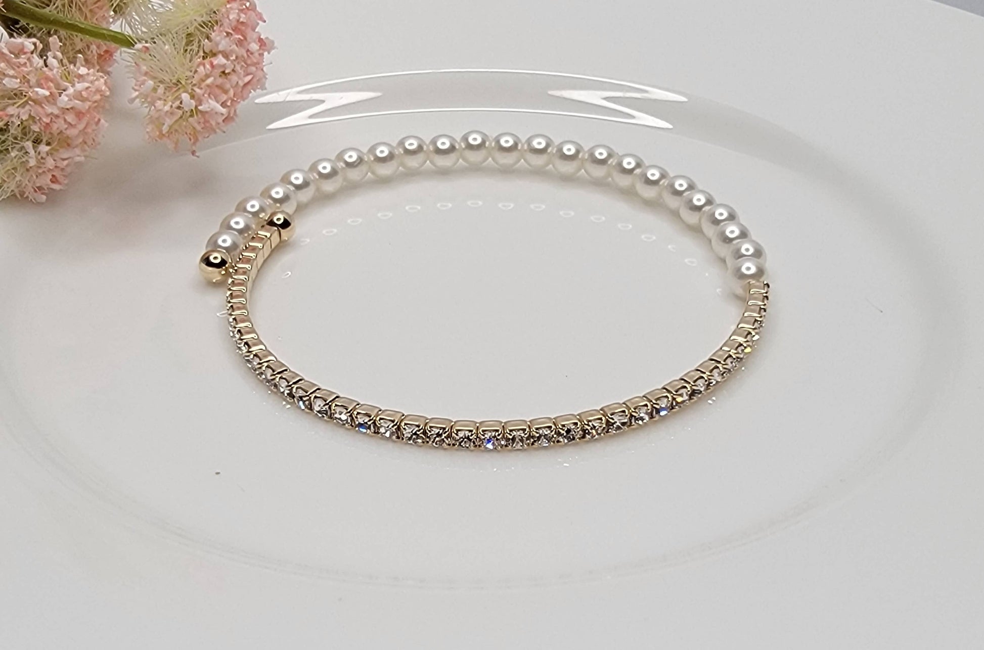 RHINESTONE WITH FAUX PEARL BRACELET.