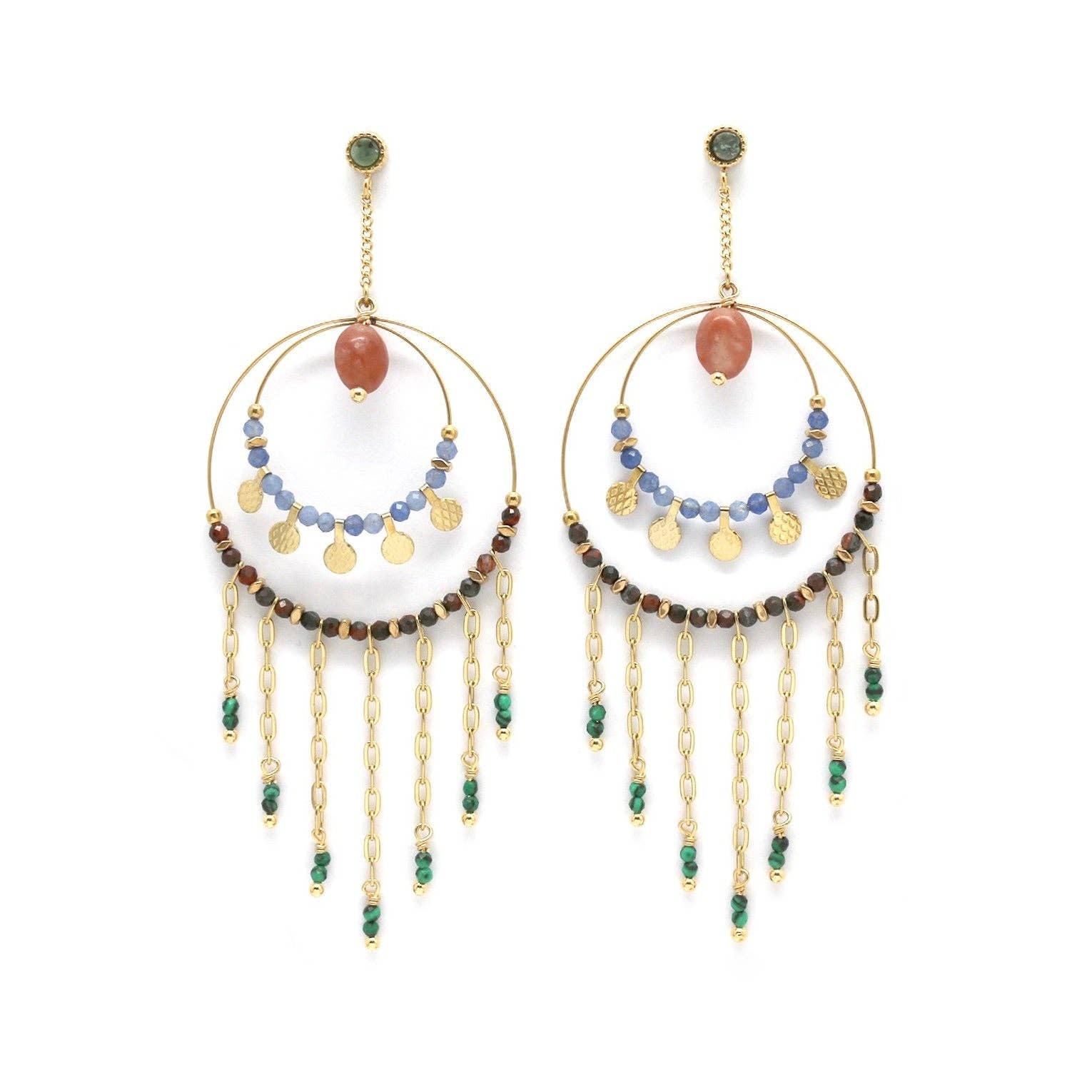Unique Fringe Semi Precious Stone Earrings -French Flair Collection- E4-133