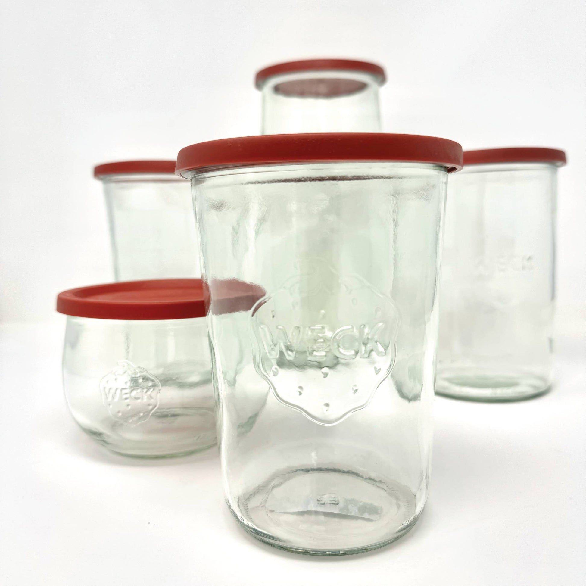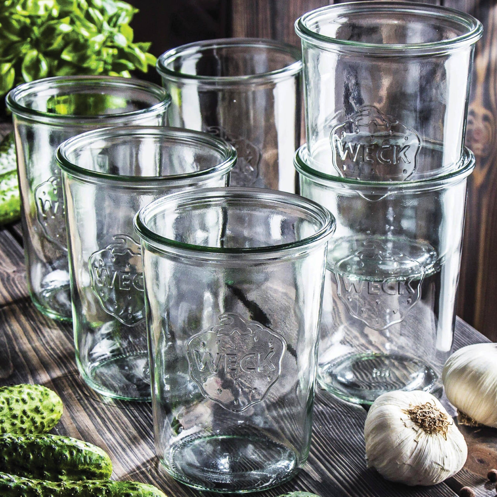 Box of 6 Jars with Glass Lids, Rings and Clamps.